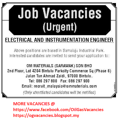 Oil Gas Vacancies Vacancies Om Materials Sarawak Sdn Bhd Bintulu