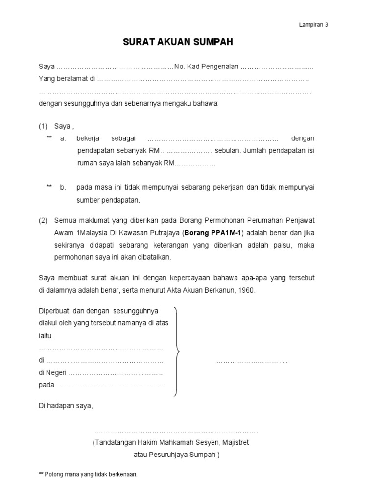 Pendapatan Pesuruhjaya Contoh Surat Akuan Sumpah Tidak Bekerja