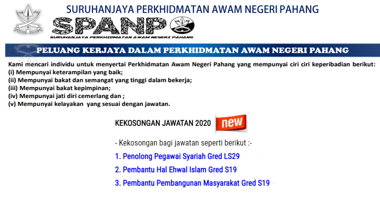Kekosongan Terkini Di Suruhanjaya Perkhidmatan Awam Negeri Pahang Spanp Jobkini Com Jawatan Kosong Swasta Glc Dan Kerajaan Terkini
