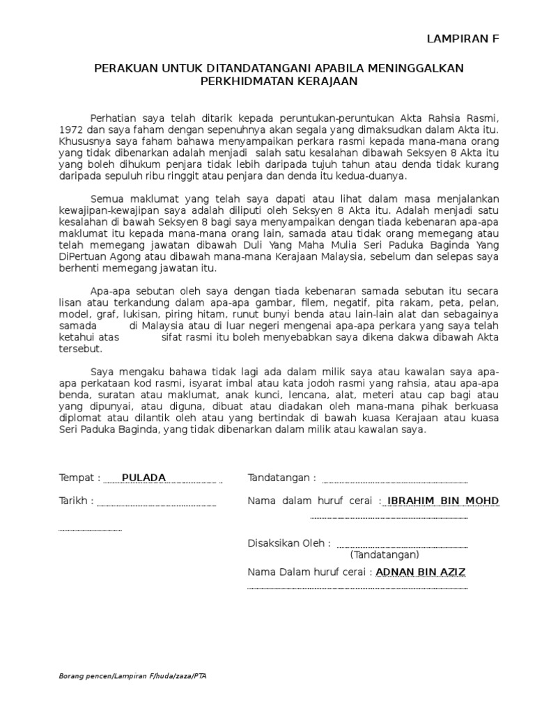 Borang Akta Rahsia Rasmi 1972 Pdf