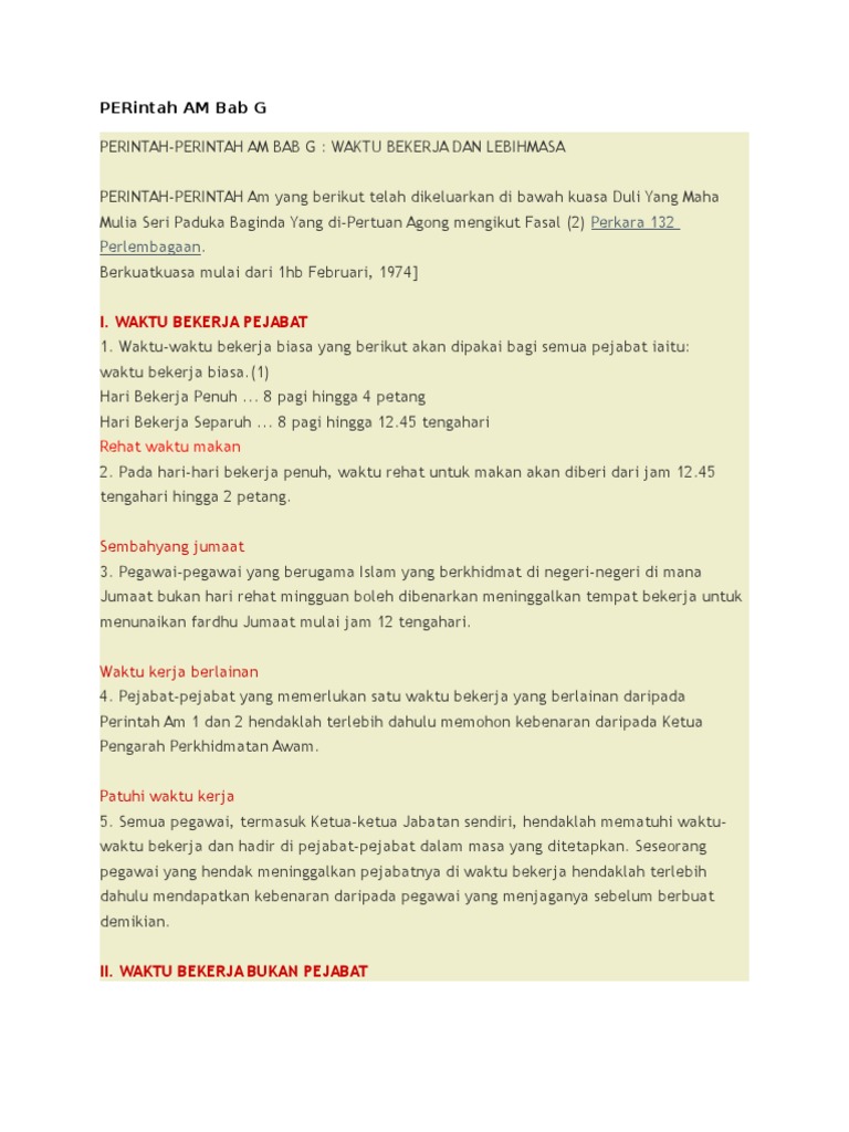 Perintah Am Bab G Waktu Bekerja Lebih Masa