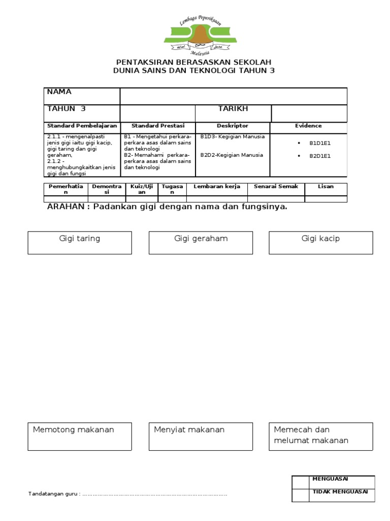 Persamaan Gigi Susu Dan Gigi Kekal Tahun 3
