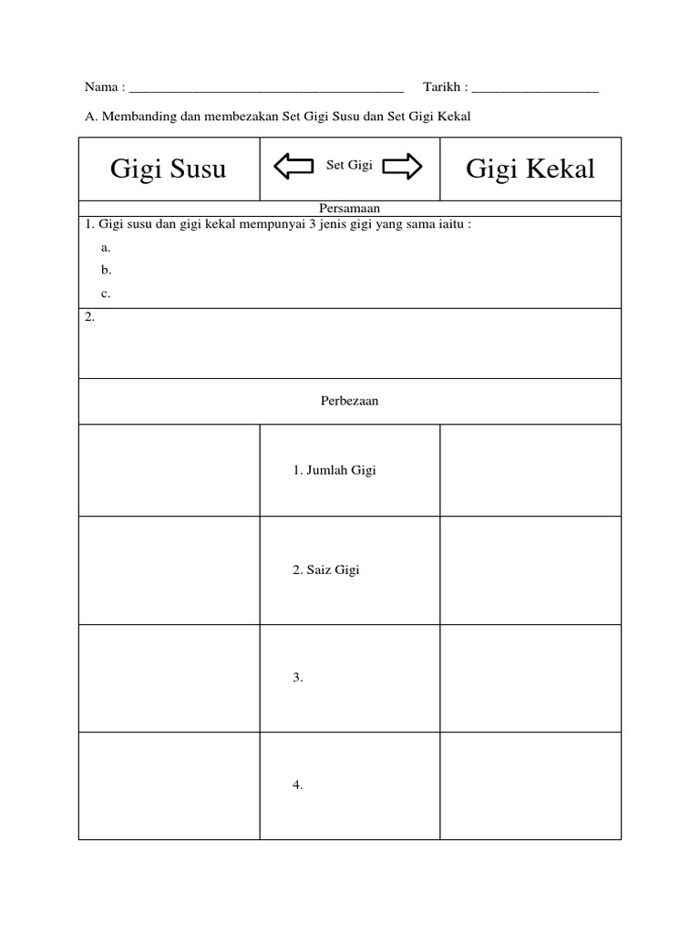 Viewlengkapkan Jadual Perbezaan Gigi Susu Dan Gigi Kekal Ciri Ciri Gigi Susu Gigi Kekal Jenis Gigi Bilangan Saiz Kekuatan Jangka Hayat Lengkapkan Jadual Perbezaan Gigi Docx Document