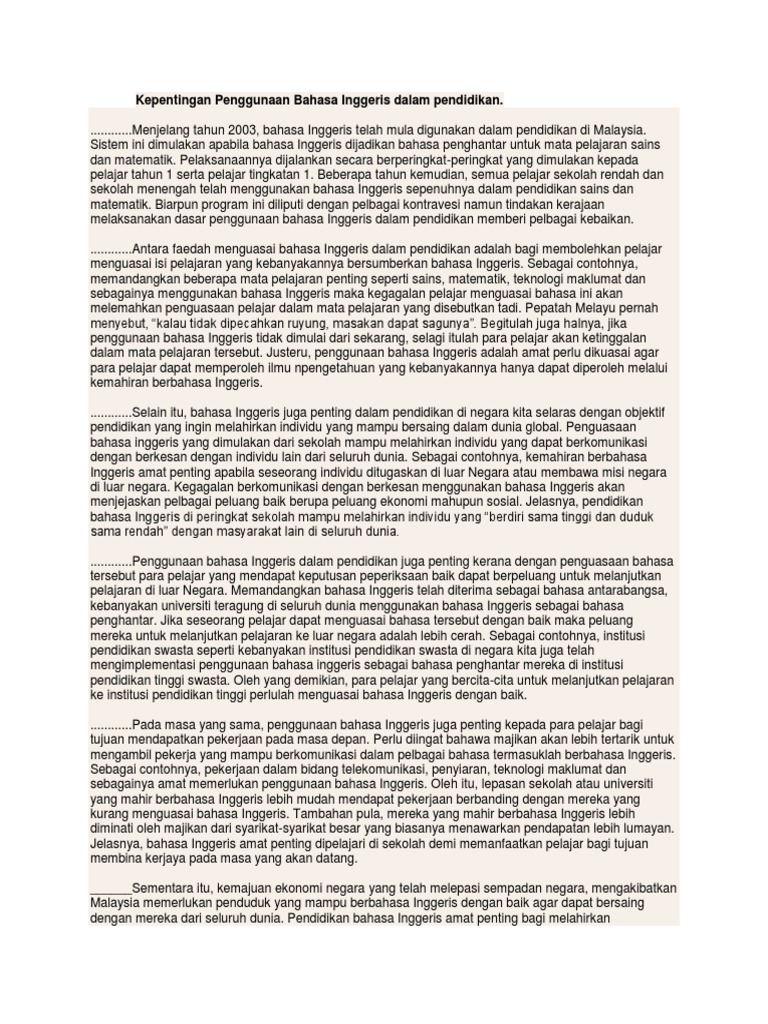 Contoh Karangan Kepentingan Menguasai Bahasa Asing Seperti Bahasa Inggeris