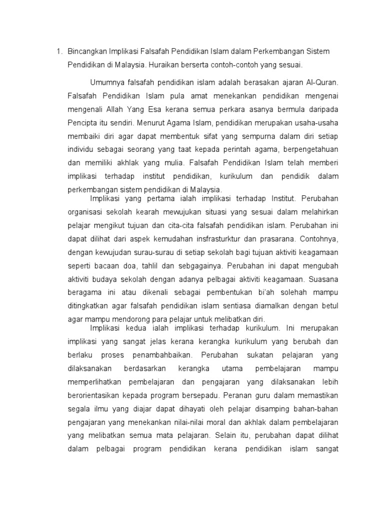 Bincangkan Implikasi Falsafah Pendidikan Islam Dalam Perkembangan Sistem Pendidikan Di Malaysia