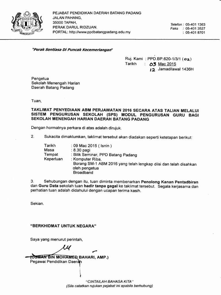 Contoh Surat Jemputan Ke Mesyuarat Taklimat