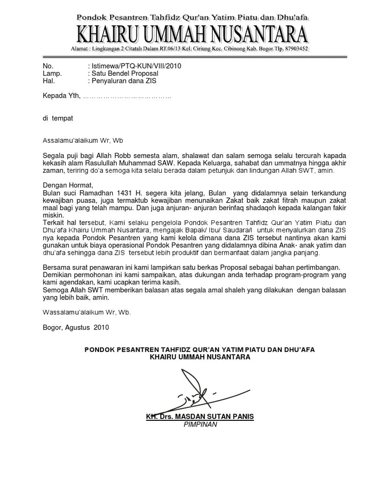 Contoh Surat Permohonan Zakat Infaq Dan Shodaqoh