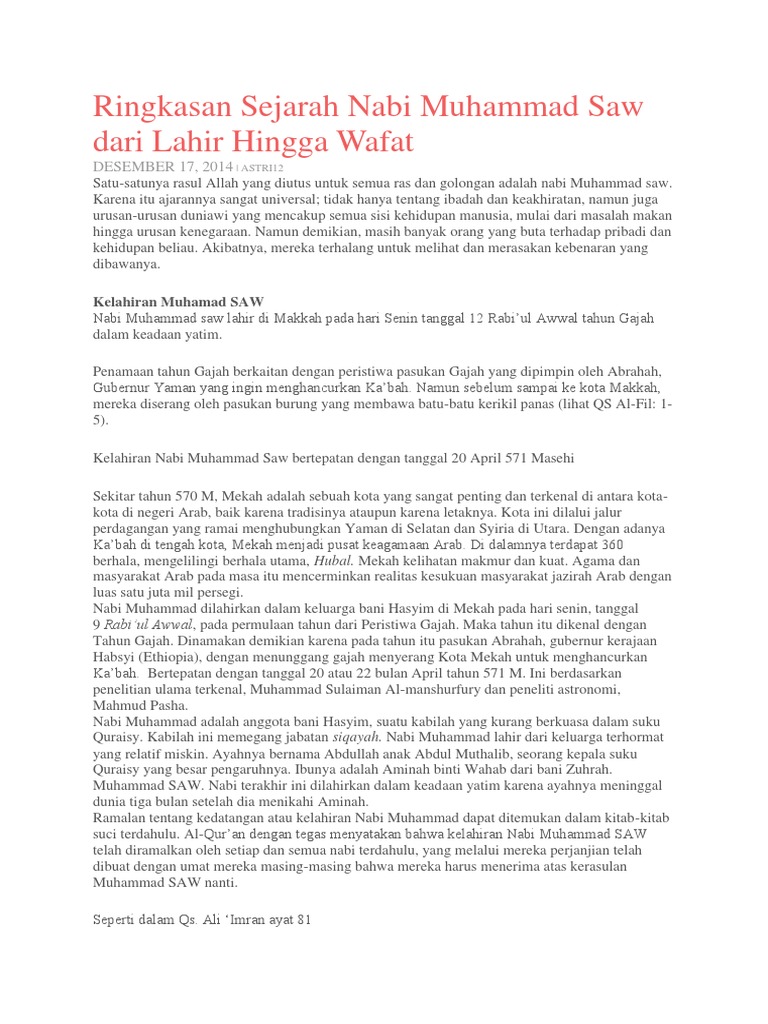 Ringkasan Sejarah Nabi Muhammad Saw Dari Lahir Hingga