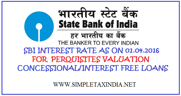 Sbi Interest Rate As On 01 04 2016 For Perquisites Valuation For Concessional Loans Simple Tax India