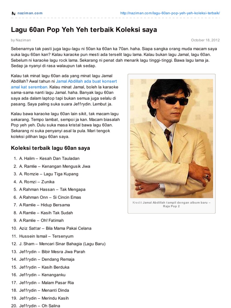 Lagu 60an Pop Yeh Yeh Terbaik Koleksi Saya