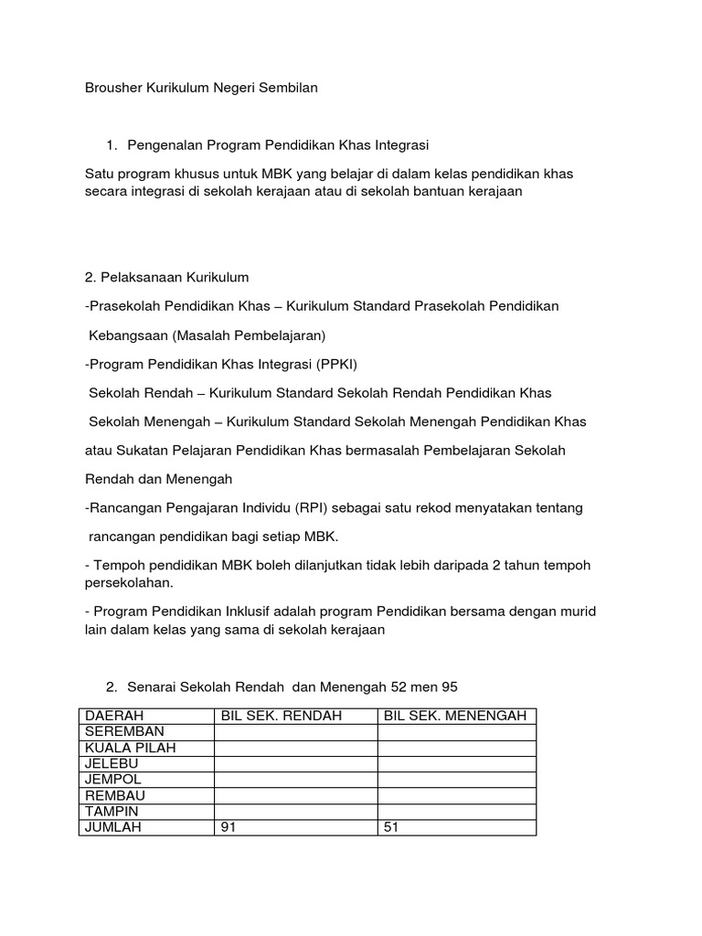 Senarai Sekolah Program Pendidikan Khas Integrasi Negeri Sembilan Kronis G