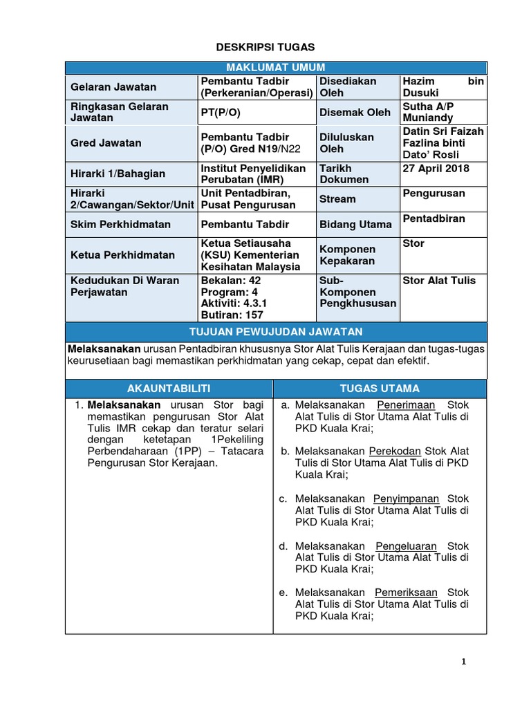 Senarai Tugas Pembantu Tadbir Perkeranian Operasi Gred N19 Index My
