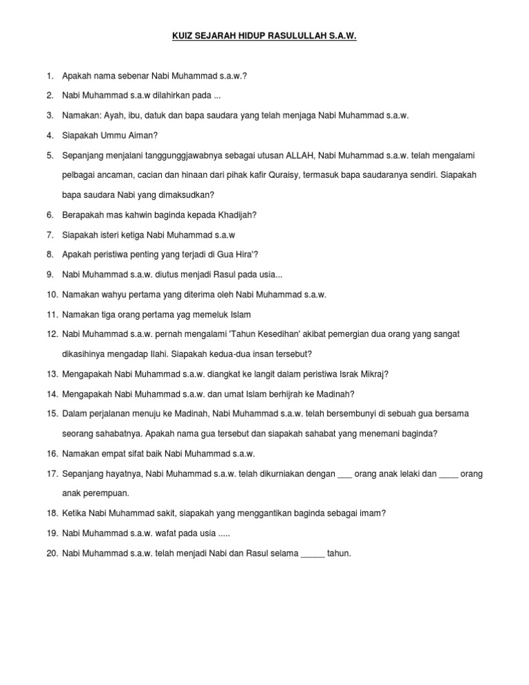 Kuiz Sejarah Hidup Rasulullah S
