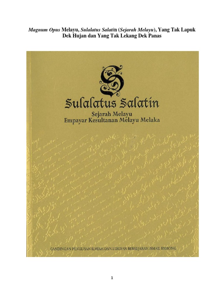 Magnum Opus Melayu Sulalatus Salatin Sejarah Melayu Yang Tak Lapuk Dek Hujan Dan Yang Tak Lekang Dek Panas