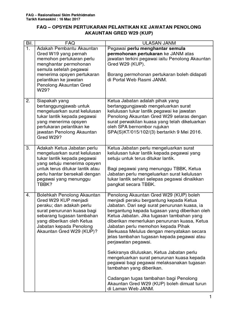 Deskripsi Tugas Pembantu Tadbir Kewangan Gred W19 Semakan My