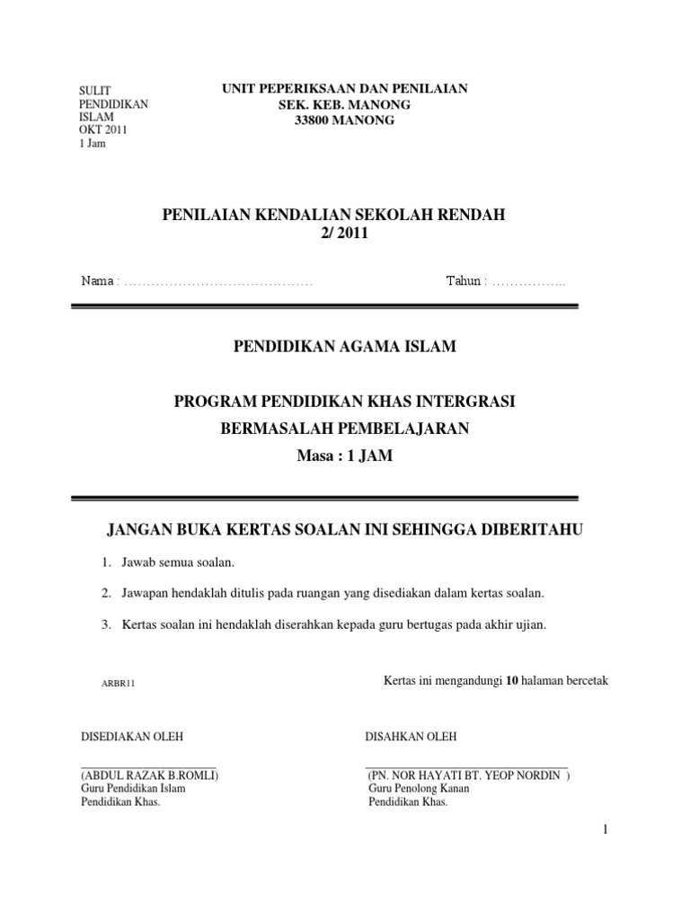 Blog Cekgu Soalan Peperiksaan Pendidikan Islam Pendidikan Khas Bp Tahun 3