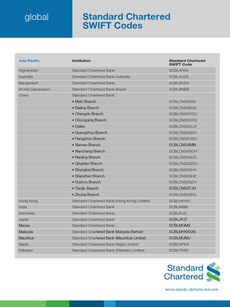 Standard Chartered Swift Codes Pdf Document