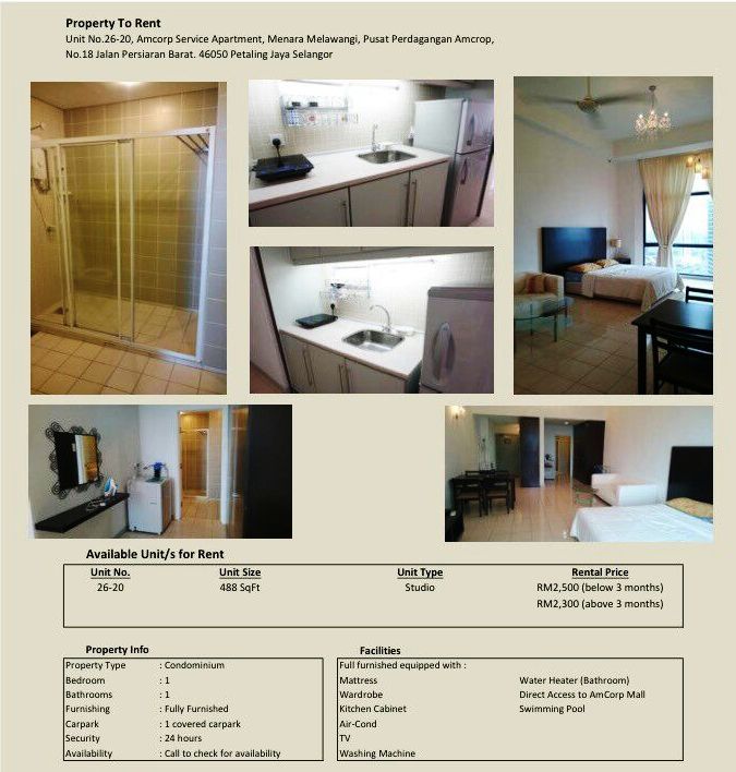 Call Whatsapp 010 3056823 Ren 00201 Fully Furnished Studio Service Apartment At Amcorp Petaling Jaya