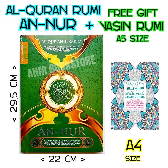 Ready Stock Alquran Al Quran Rumi Annur An Nur An Nur A4 Size Percuma Yasin Rumi Shopee Malaysia