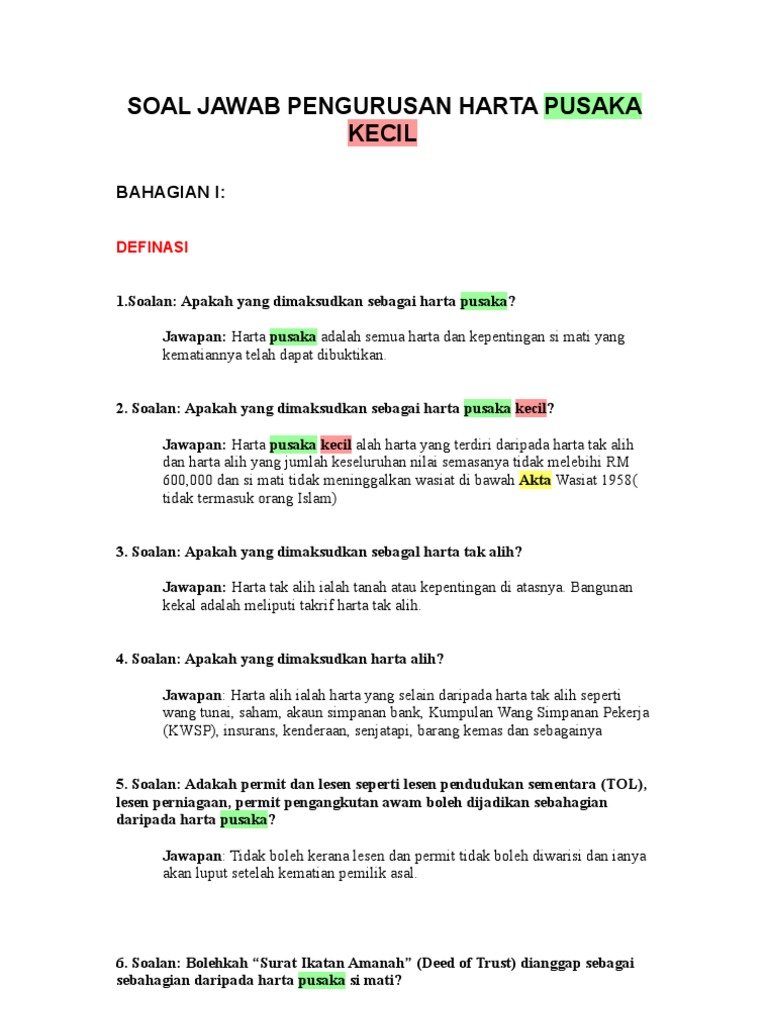 Soal Jawab Pen Gurus An Harta Pusaka Kecil