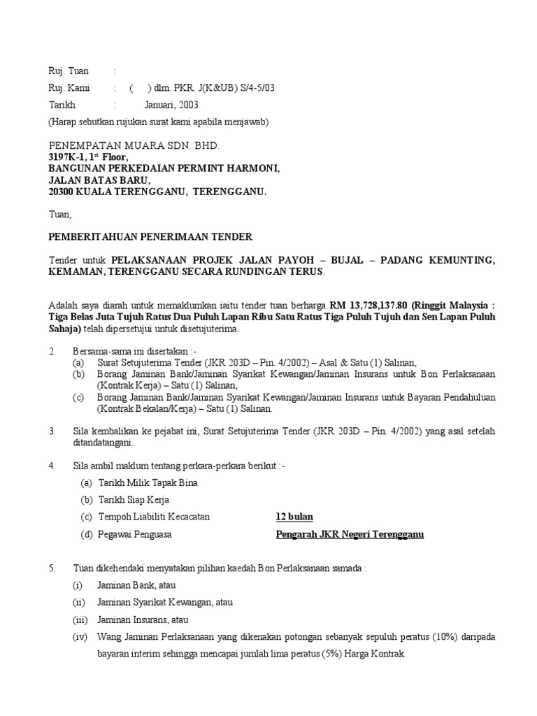 Surat Setuju Terima Tender Jkr 203d