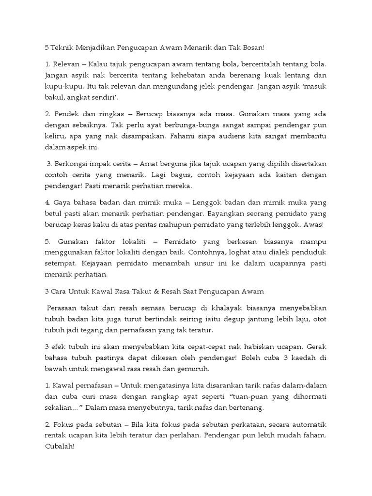 Contoh Teks Pengucapan Awam Yang Menarik Dan Ringkas