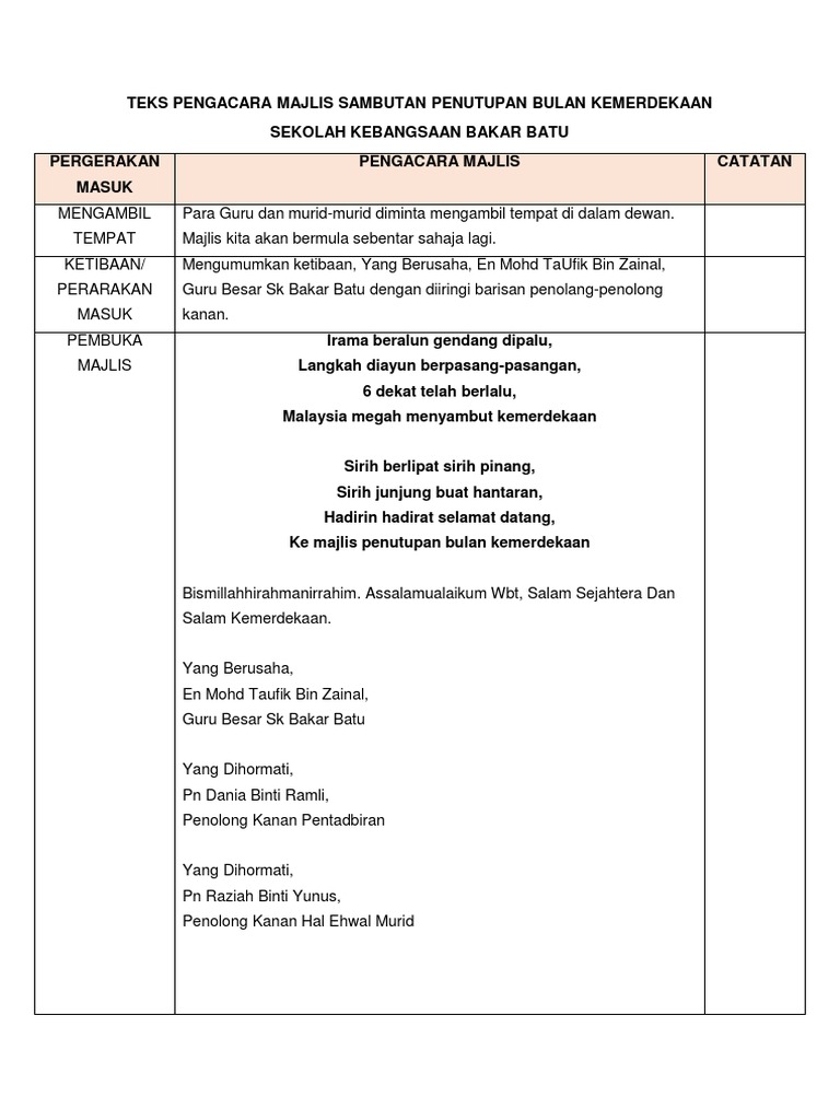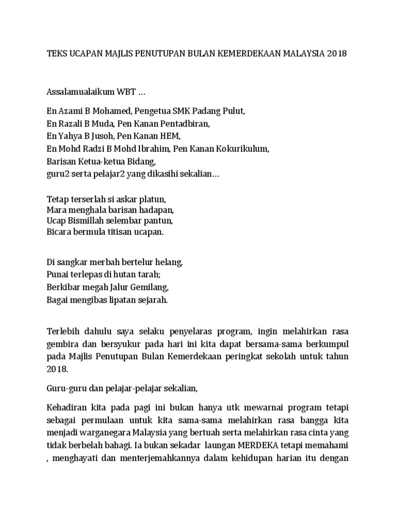 Teks Ucapan Penutup Merdeka 2018 Pages 1 2 Text Version Anyflip