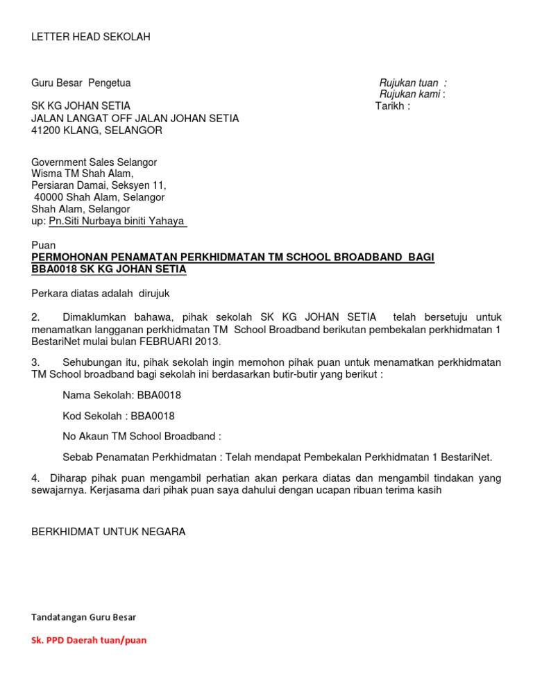 1 Contoh Surat Penamatan Tm School Broadband Doc Google Drive