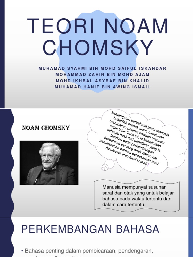 Perkembangan Bahasa Teori Chomsky Pptm Perkembangan Bahasa Teori Chomsky Nama Pensyarah Puan Hawa Bt Abdullah Ibrahim Avram Noam Chomsky Bukan Course Hero