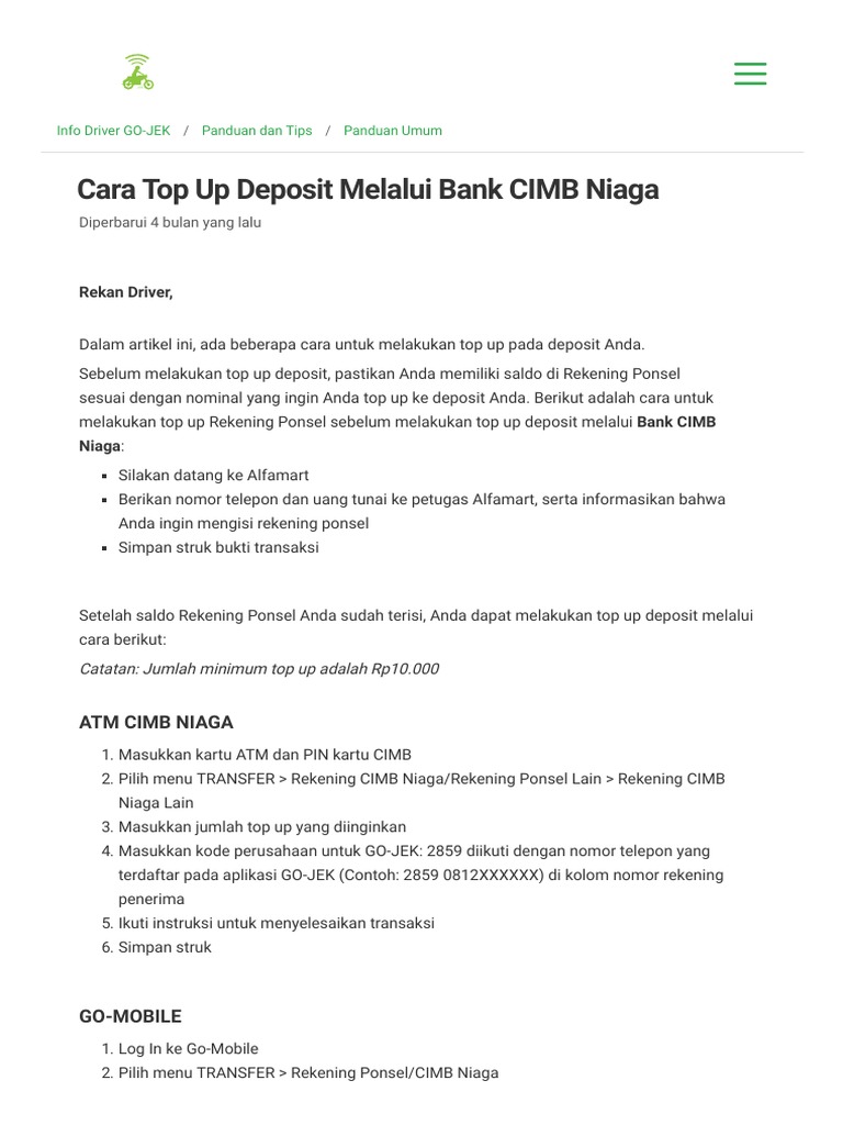 8 Cara Top Up Grab Driver Via Atm Cimb Niaga 2020 Gojeker
