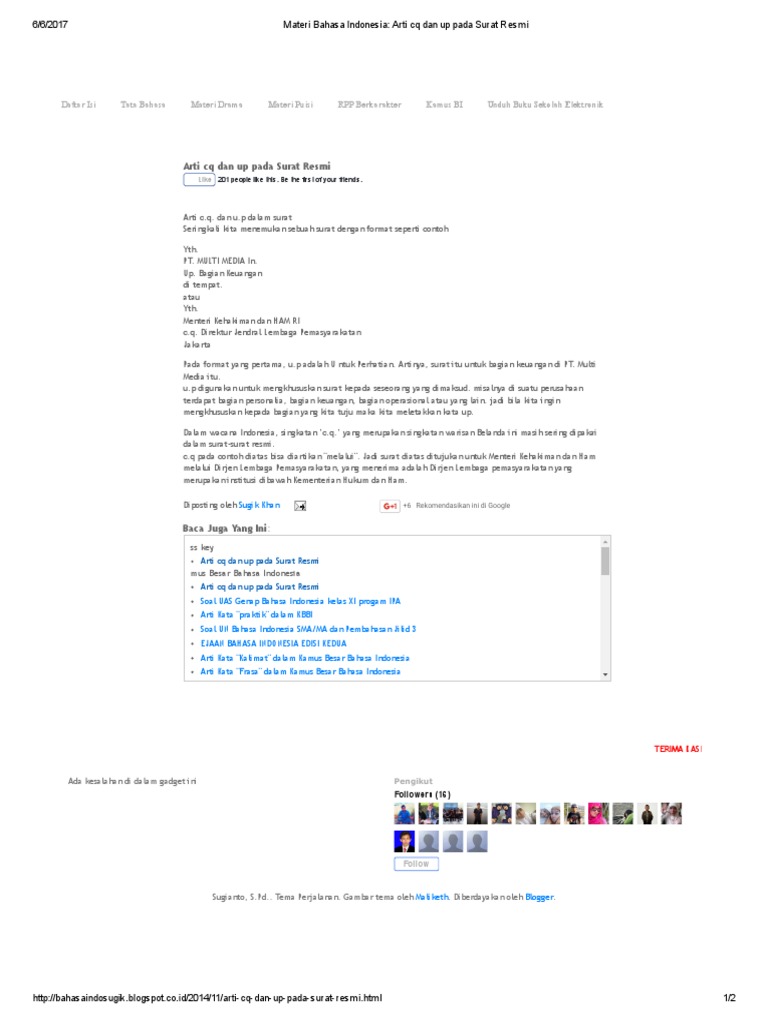 Materi Bahasa Indonesia Arti Cq Dan Up Pada Surat Resmi