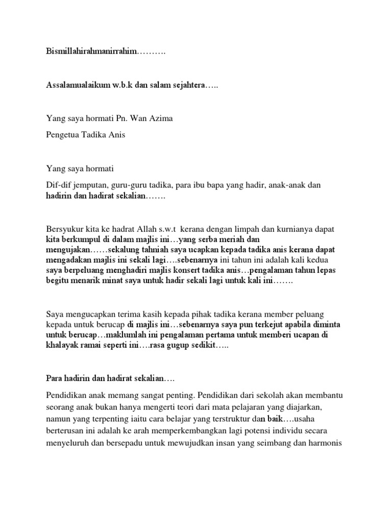 Contoh Ucapan Terima Kasih Cikgu Tadika 1001 Ucapan