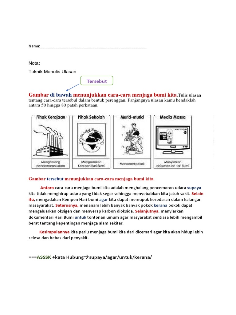 Contoh Ulasan Pencemaran Alam Sekitar Upsr