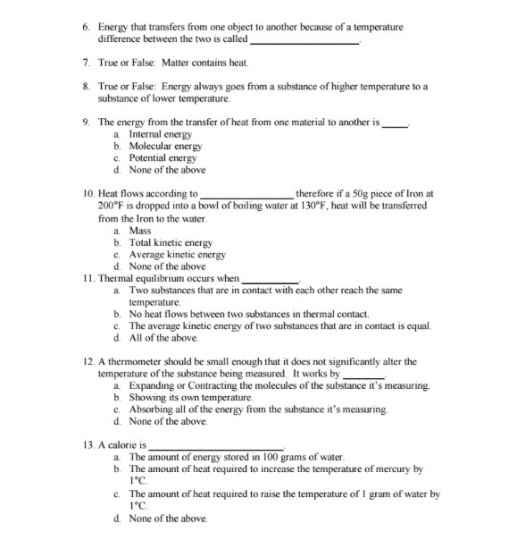 Solved Energy That Transfers From One Object To Another B Chegg Com