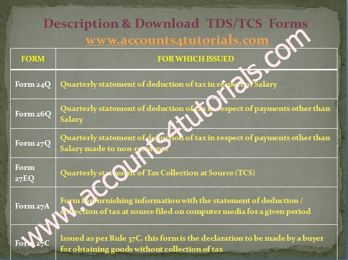 Tds Tcs Forms Description And Download Form 24q 26q 27q 27eq 27a 27c Accounting Taxation