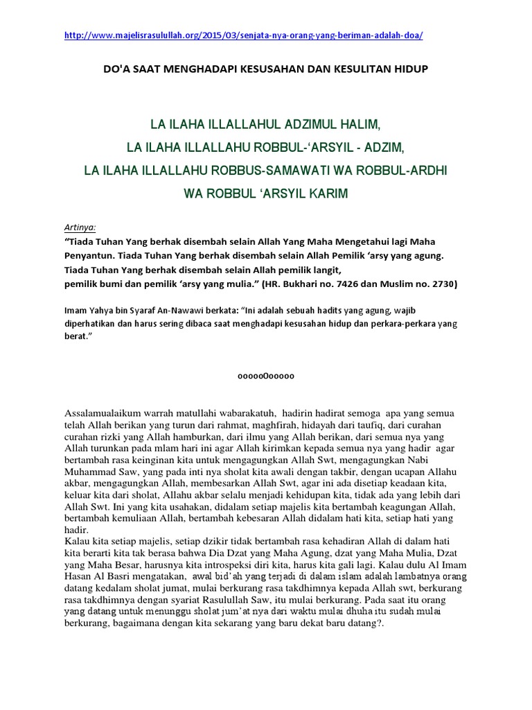 Doa Dzikir Hadapi Kesusahan Penderitaan Kesedihan La Ilaha Illallahul Azimul Halim Youtube